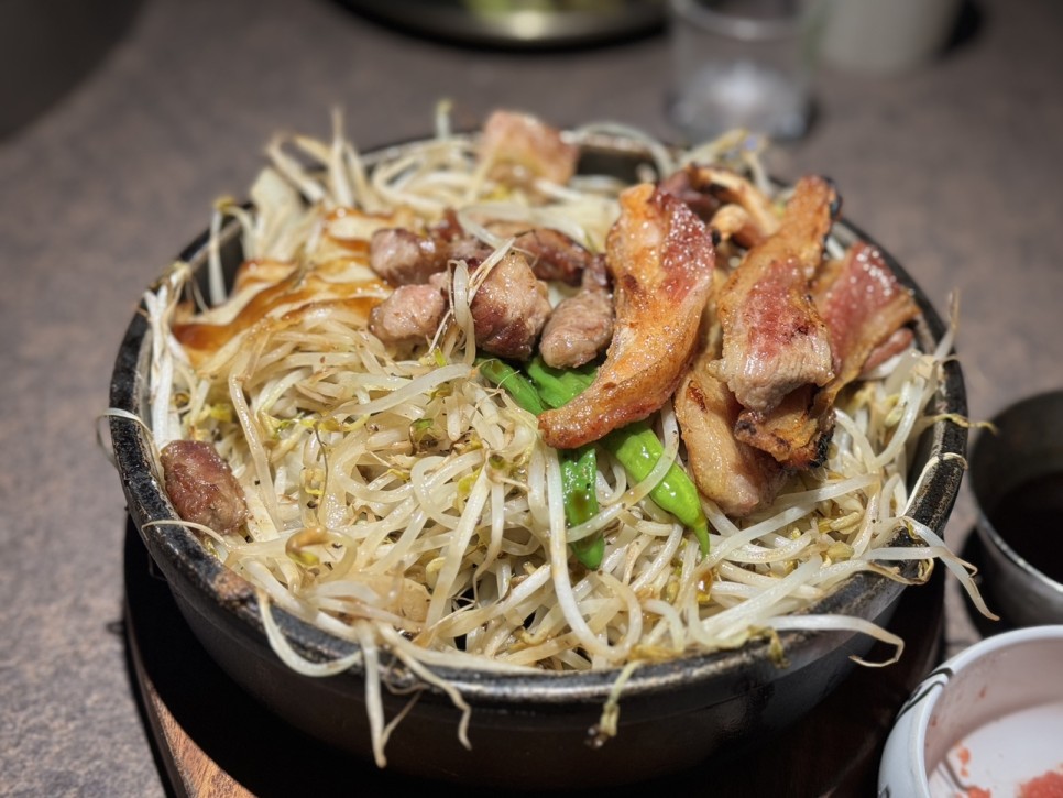 고기를 주문하면 돌솥에 숙주가 나오는데