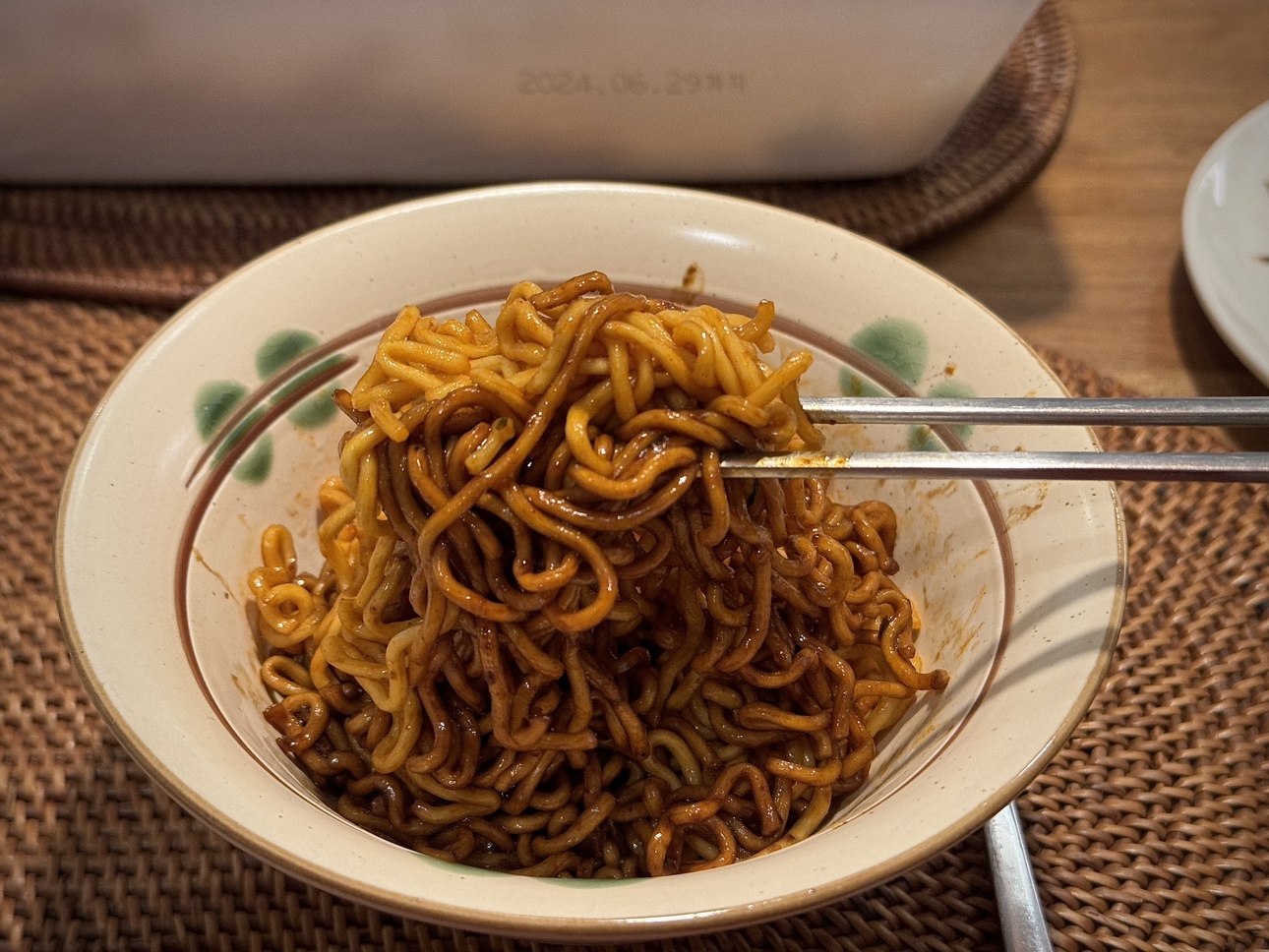 시간이 지날수록 면이 불어 힘들어지는 면도 있다