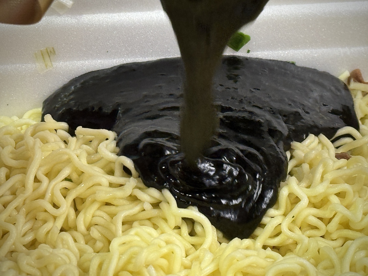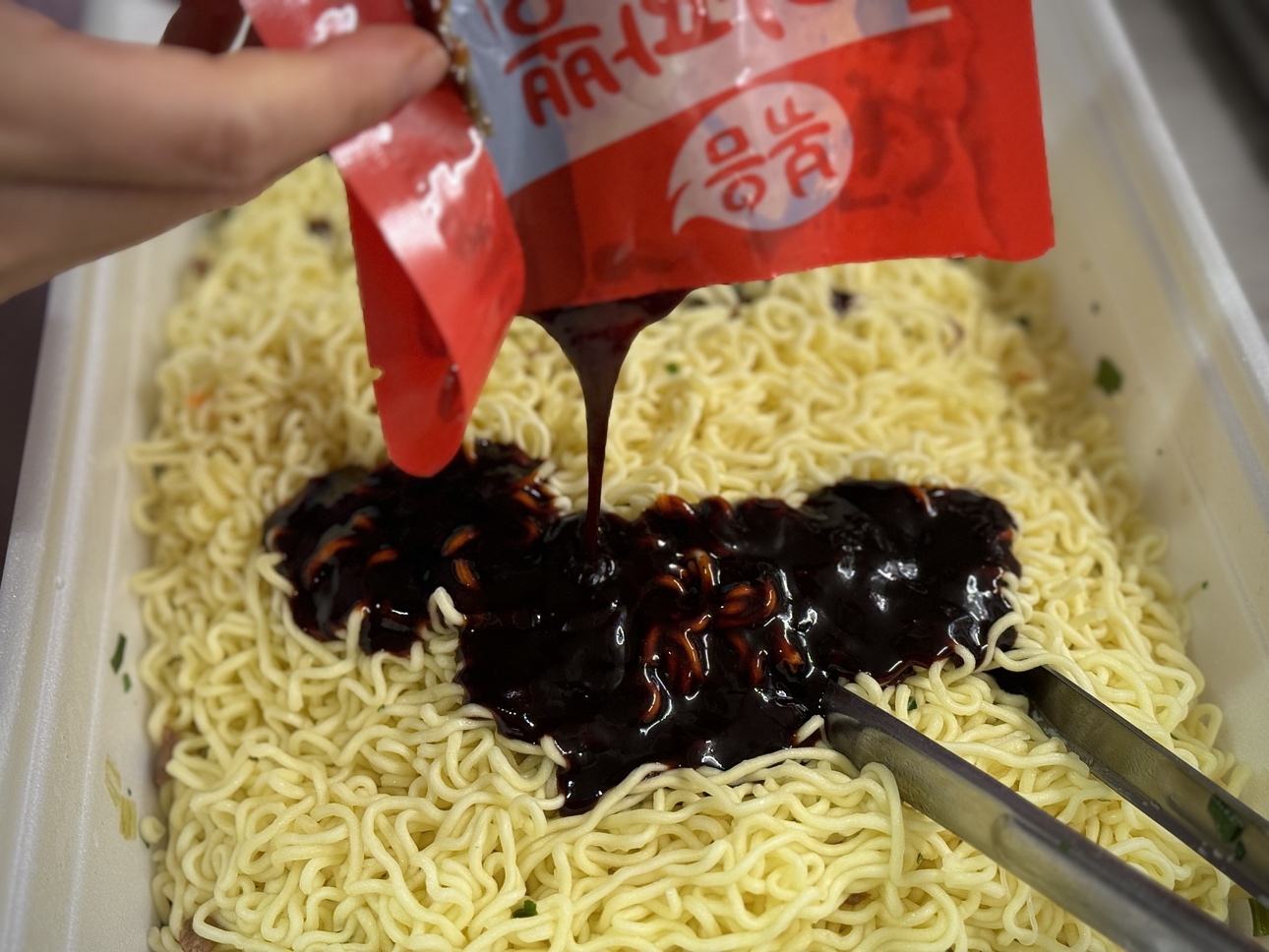 먼저 한 쪽에 공화춘 액상 소스를 투하하고